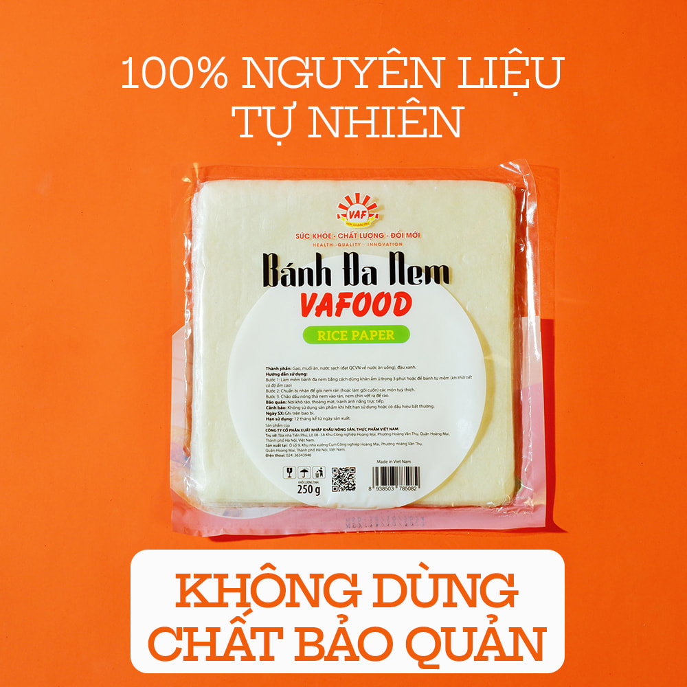 Bánh đa, bánh tráng VAFOOD phù hợp để ăn các món gỏi cuốn, hoặc sử dụng để gói nem rán. Được sản xuất hoàn toàn từ nguyên liệu tự nhiên, không sử dụng chất bảo quản. Phơi sấy trong mô hình nhà xưởng khép kín, đảm bảo chất lượng và vệ sinh an toàn thực phẩm. Một sản phẩm không thể thiếu trong tủ đồ khô của các bà nội trợ